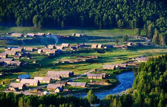 After breakfast, drive to Hemu Village, one of China’s “Six Most Beautiful Villages.” Wander among traditional Tuwa log cabins and meet eagle-keeping nomads. Hike to Hemu Viewing Platform for a panoramic vista of the Altay Mountains and birch forests. Continue to Jiadengyu. Overnight: JiadengyuDay 6: Jiadengyu → Burqin (180 km, 4 hrs)